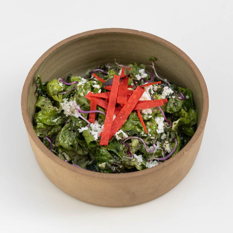 Crisp romaine layered with avocado and dressed in a bright cilantro-lime emulsion. Finished with queso fresco and house-fried tortilla shards • Add: Steak +$8.00 | Shrimp +$9.00 | Seared Tuna +$10.00